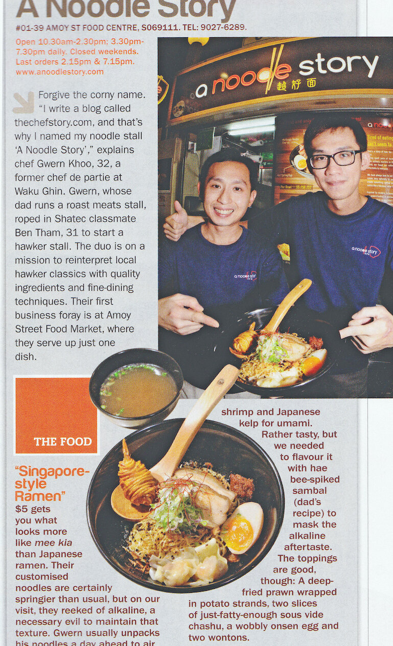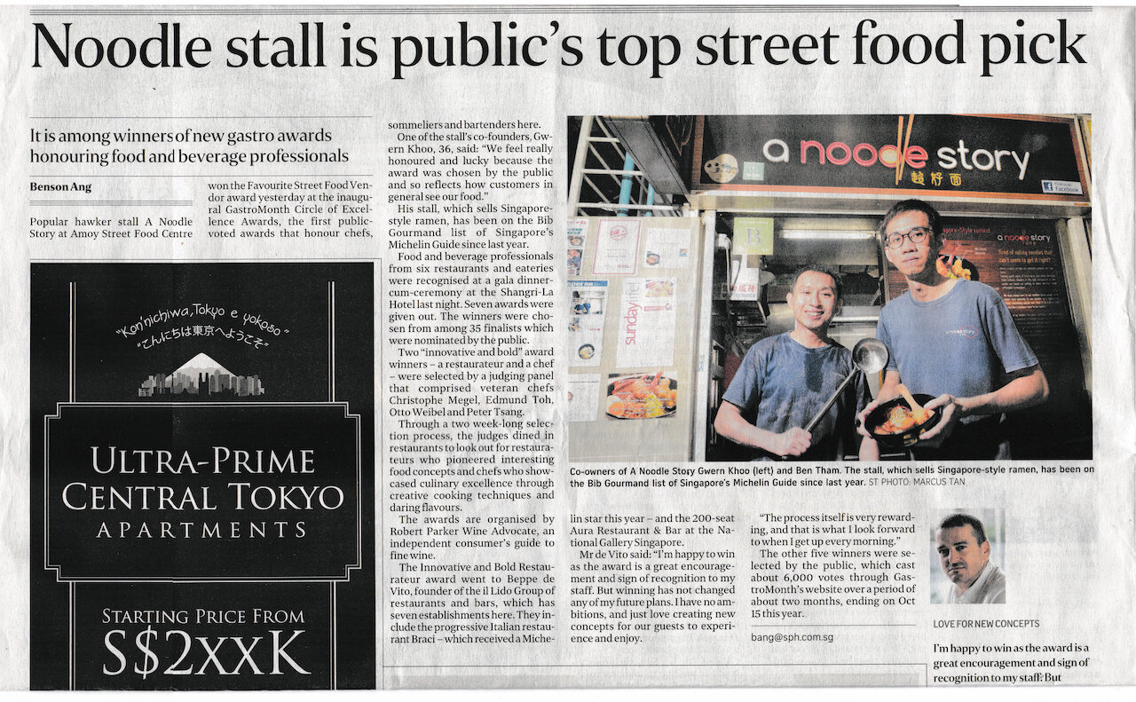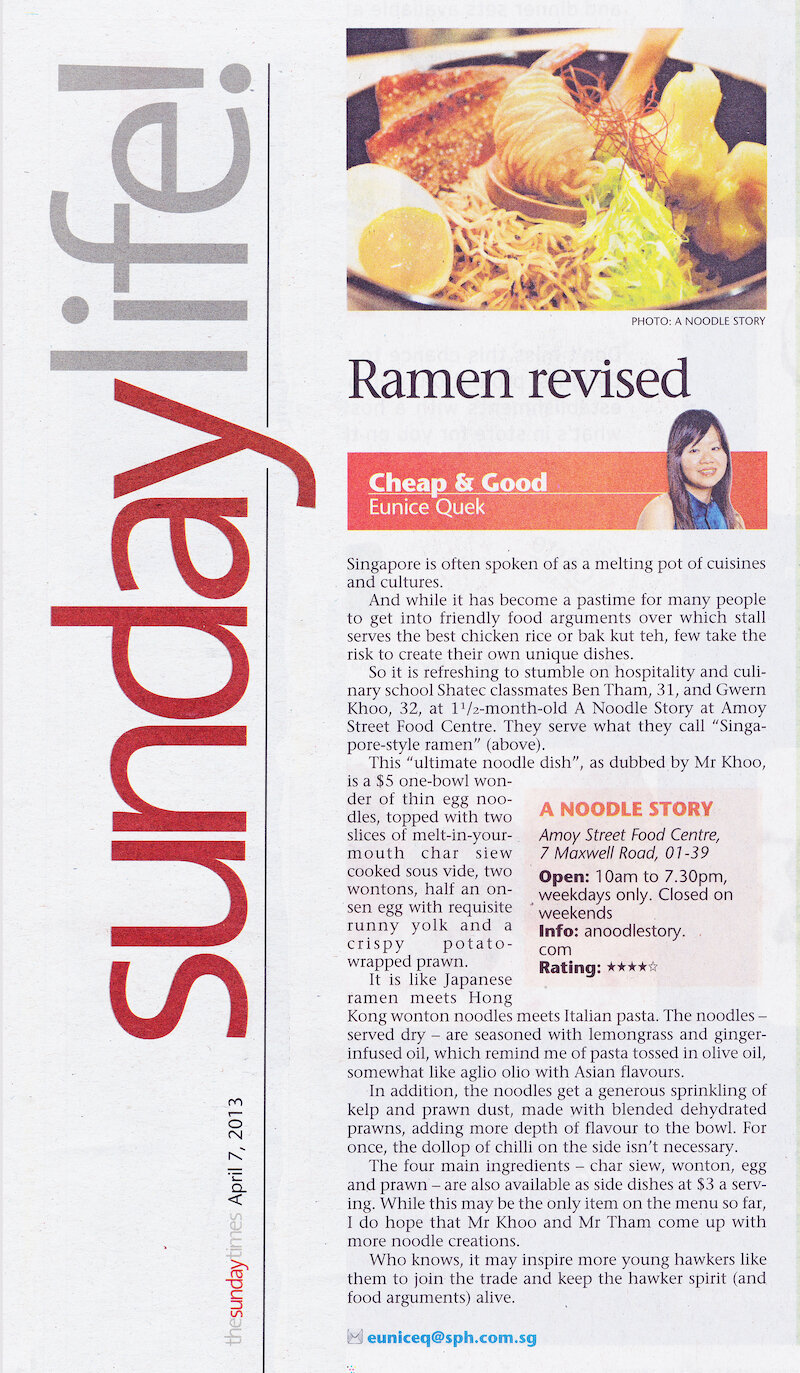 A Noodle Story featured by Sunday Times, the top newspaper in Singapore