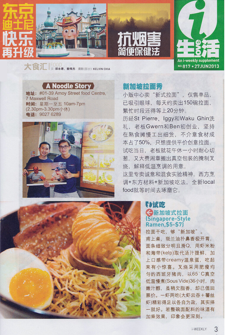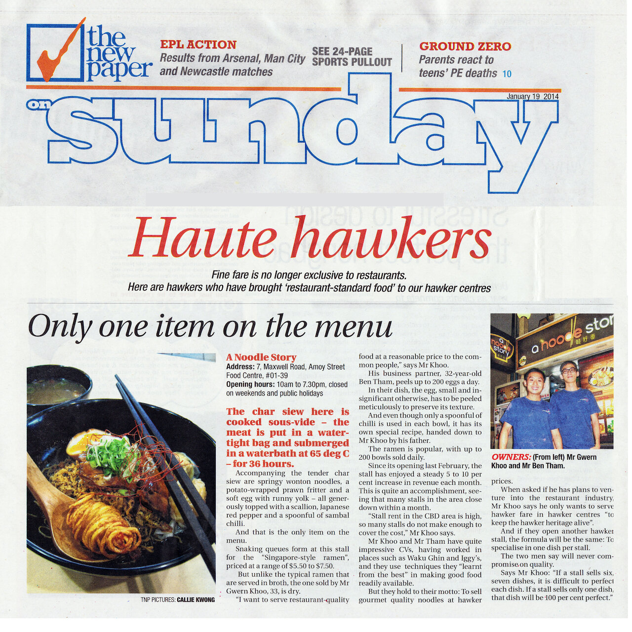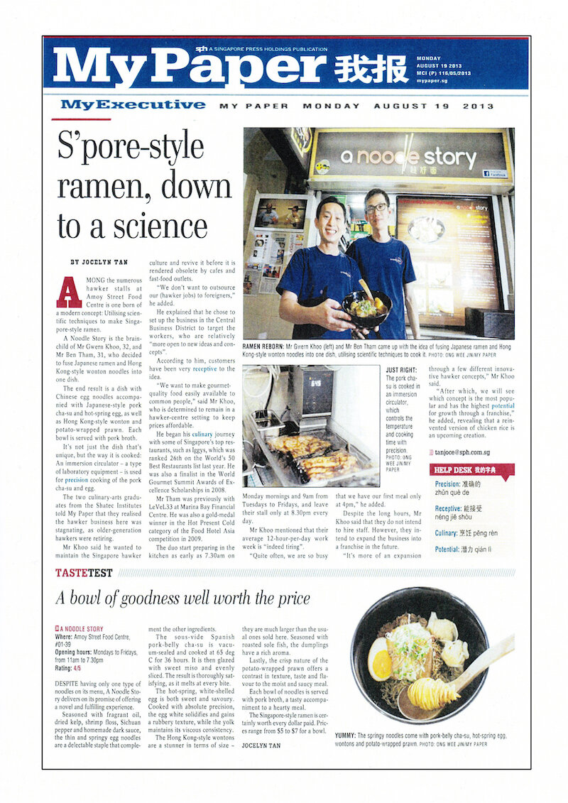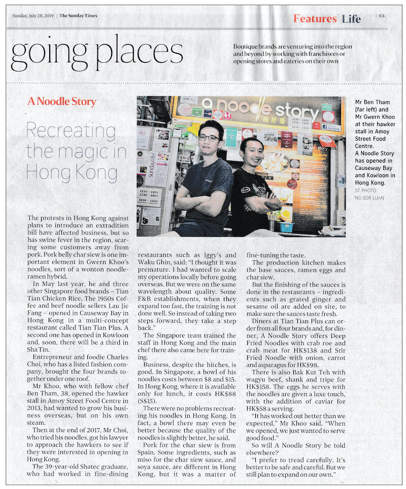 A Noodle Story featured by Sunday Times, the top newspaper in Singapore