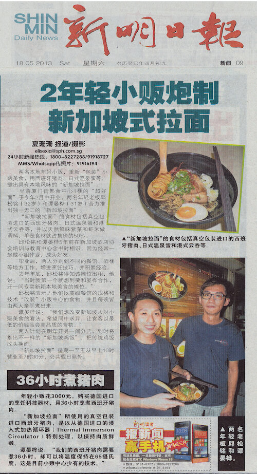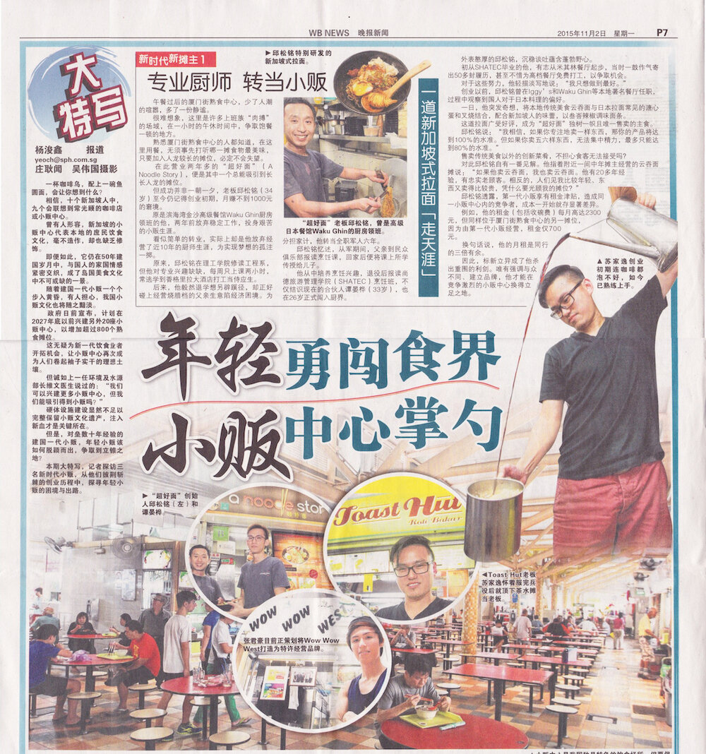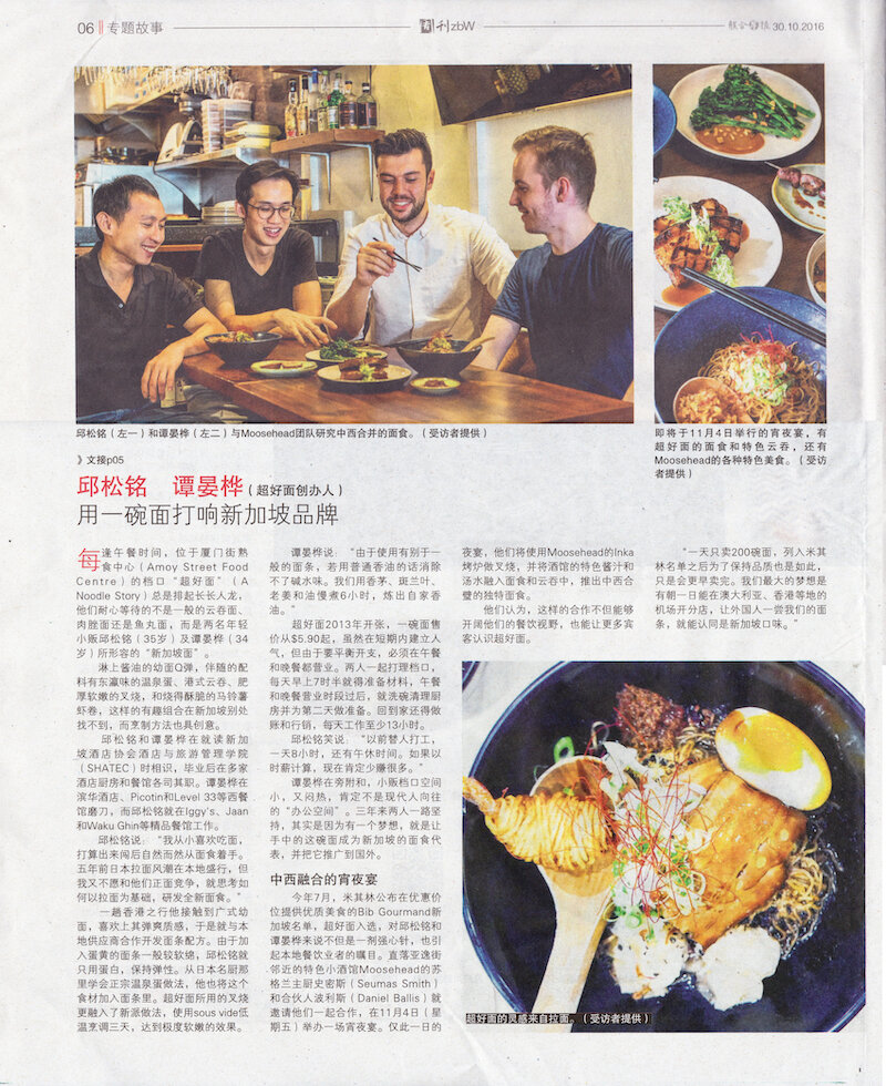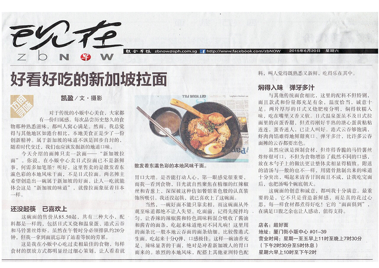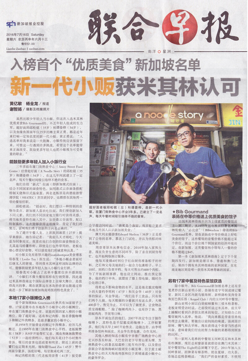 A Noodle Story featured by Zao Bao, the top morning Chinese paper in Singapore