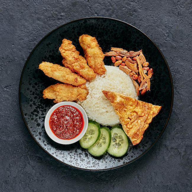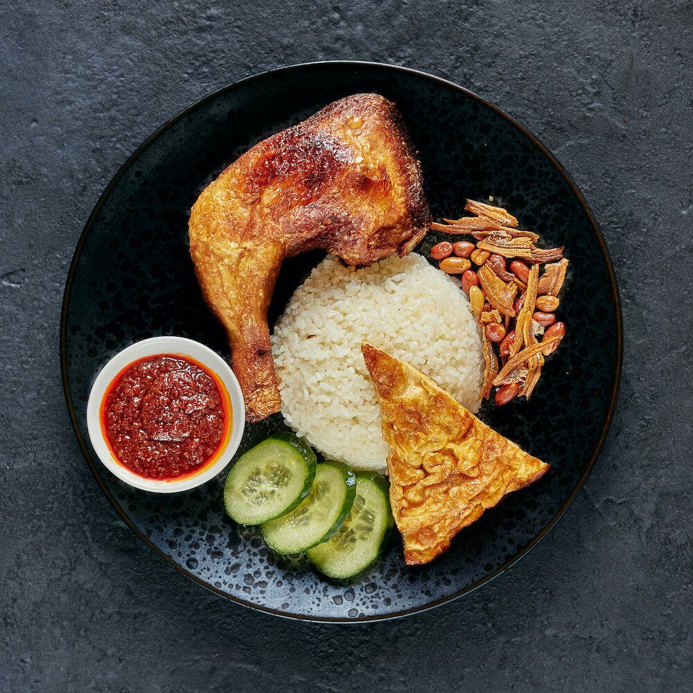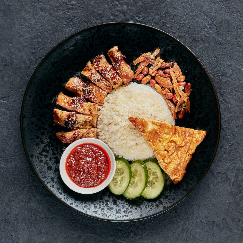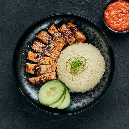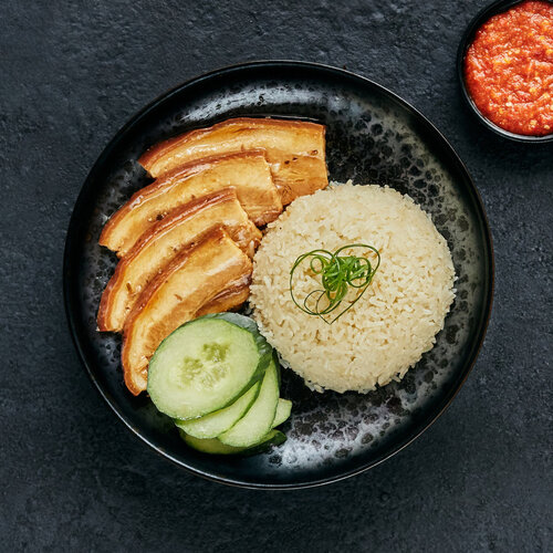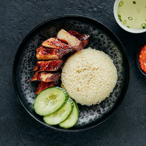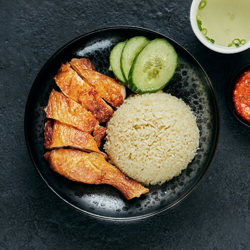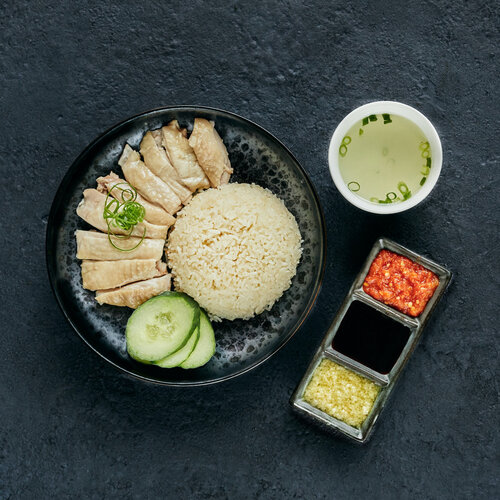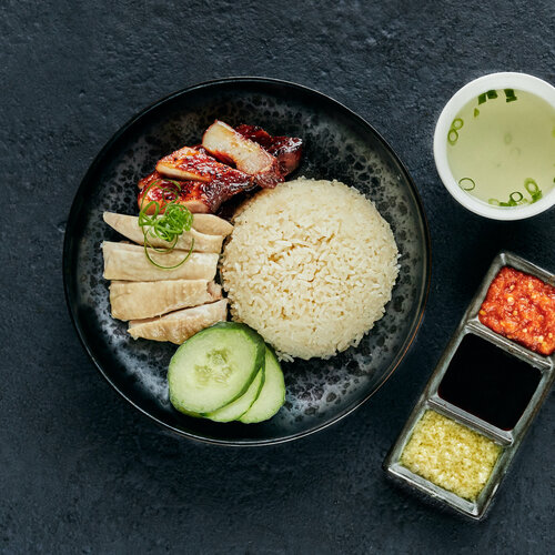 Savor tender chicken with rice infused in fresh chicken oil, enhanced by three signature sauces.